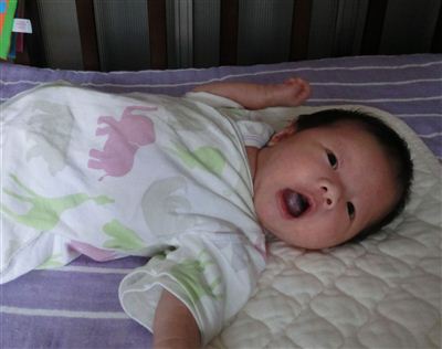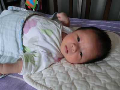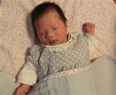 眠りながら唸り続け、おむつを変えようとしたら薄めを開けてまわりを見渡し満足気な表情の一昨日の孫ちゃん。