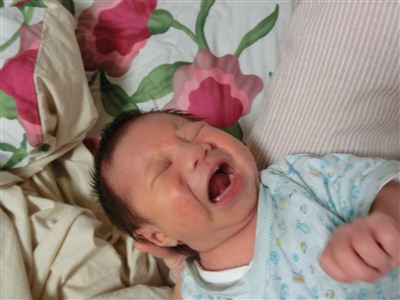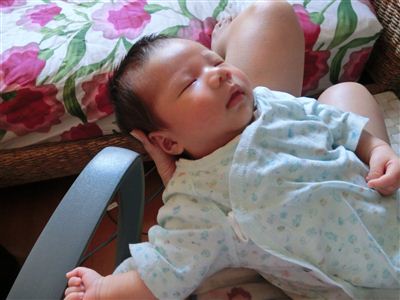眠りながら唸り続け、おむつを変えようとしたら薄めを開けてまわりを見渡し満足気な表情の一昨日の孫ちゃん。