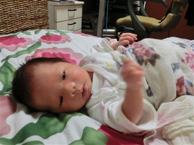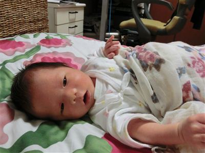ここんとこ起きてる時間が増えてる孫ちゃん。そして泣き声も大きくなった孫ちゃん。