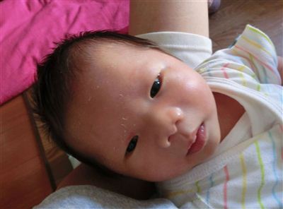 生後10日。抱かれていてもこんな顔が多かったみたい。頼りなさ気でかわいい。