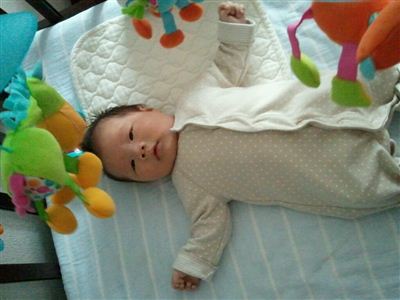メリーで遊ぶ孫ちゃんは音も聞こえて、メリーのお人形もわかってるようで楽しそう。