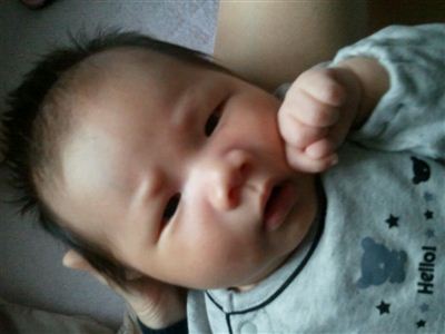 眉毛に力入ったこの表情、相変わらず笑える。かわいーねープーちゃんな孫ちゃん