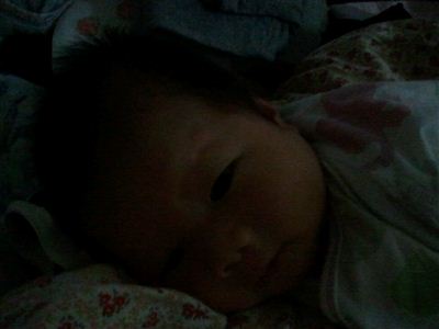 夜、寝せようと電気を消すも、目を開けてる孫ちゃん。