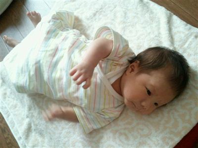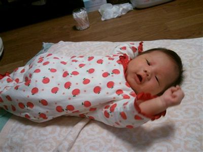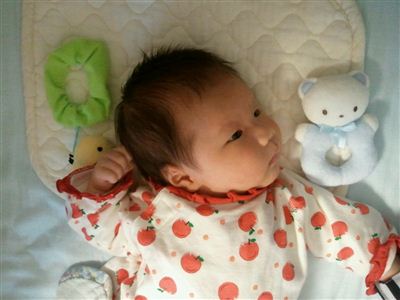 退院直後の孫ちゃんはとても小さくて、壊れそうにふにゃふにゃだったのに、1ヵ月で体に肉がたくさんついて今ではもう危なっかしくない(笑)