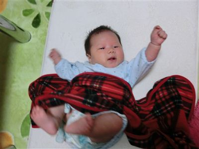 孫ちゃんはご機嫌な時、お喋りして、手足バタバタ運動をする。