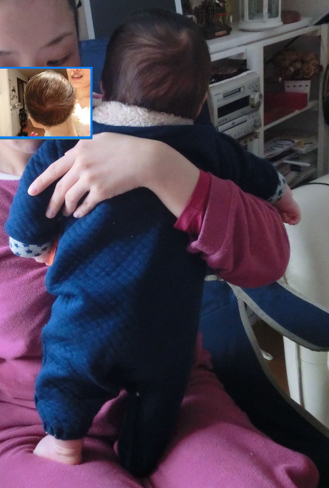 ←(写真の中の小さな写真は生後3週間の孫ちゃん頭)