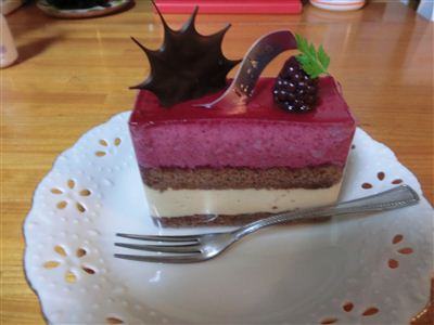 カシスの甘い味と何層ものババロアの味が絶妙。