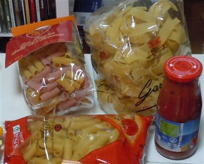 タリアテッレ(フィットチーネみたいな平打ちパスタの)が500gで1.59ユーロ(190円くらい)