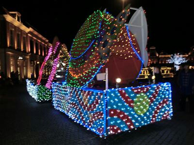 イルミネーションに輝く騎馬や馬車、キャラクター、ハウステンボス歌劇団のキャストや、次から次に出てきます。