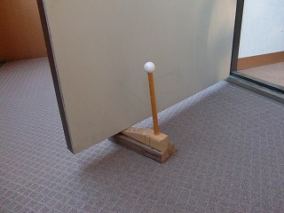 わたしのドアストッパー、高さがいまいち足りないので板で補充してたんだけど、昨日じっちゃんが来て「これはつまらんから、かちっと止まるようにしてやる」と言ってストッパーにも板をつけてくれた。