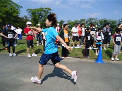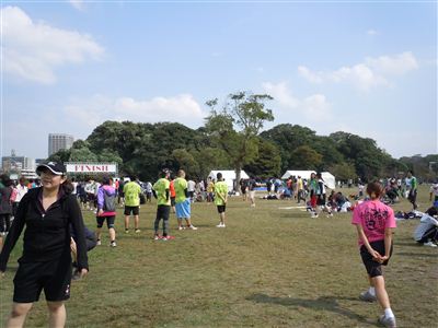 我らがチームは男子5+女子5の男女混合チームで参加なので、メンズ君5人とわがジムの女の子IRが2周走ります。残りのわたし達凡人女子は1周走るだけ。