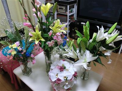 帰る時になって次々に花が渡され、渡されると持って帰りたくなり全部持って帰ることにした。