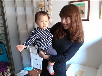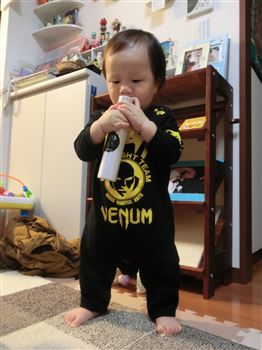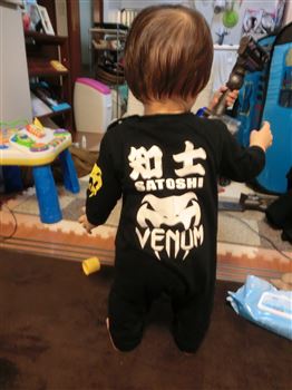 去年、出産祝いに作ってもらった名前入りVENUMのロンパースもちょうど良くなった❤