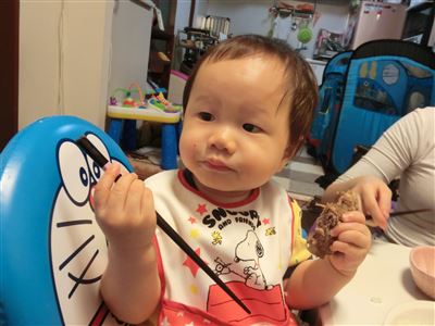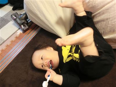 前歯が生えそろったので、固いものも噛んで食べれます。