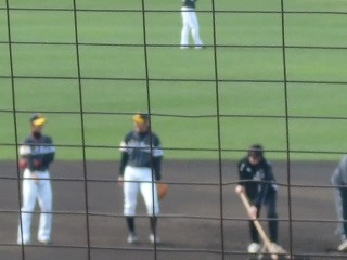 とりあえず、むねりんを探す。遠すぎて背番号すら読めない。