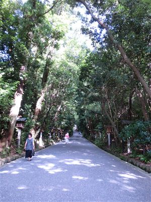 両側を樹に守られたような参道。 神社ならではの気を感じる。