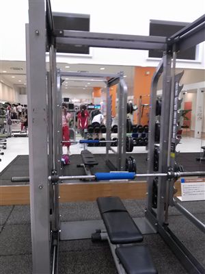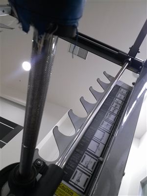 ここのジムの「マックスラック」は、上下移動のバーがさらに前後にも移動する最高級スミスマシン。