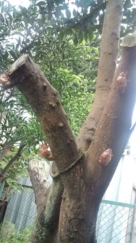 畑にいくとこんな感じであちこちの木にセミの抜け殻がうようよです。