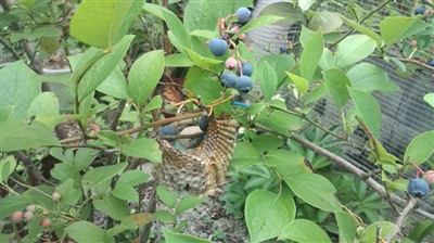 そして先々々週、ハチが飛び回ってたブルーベリーの蜂の巣。