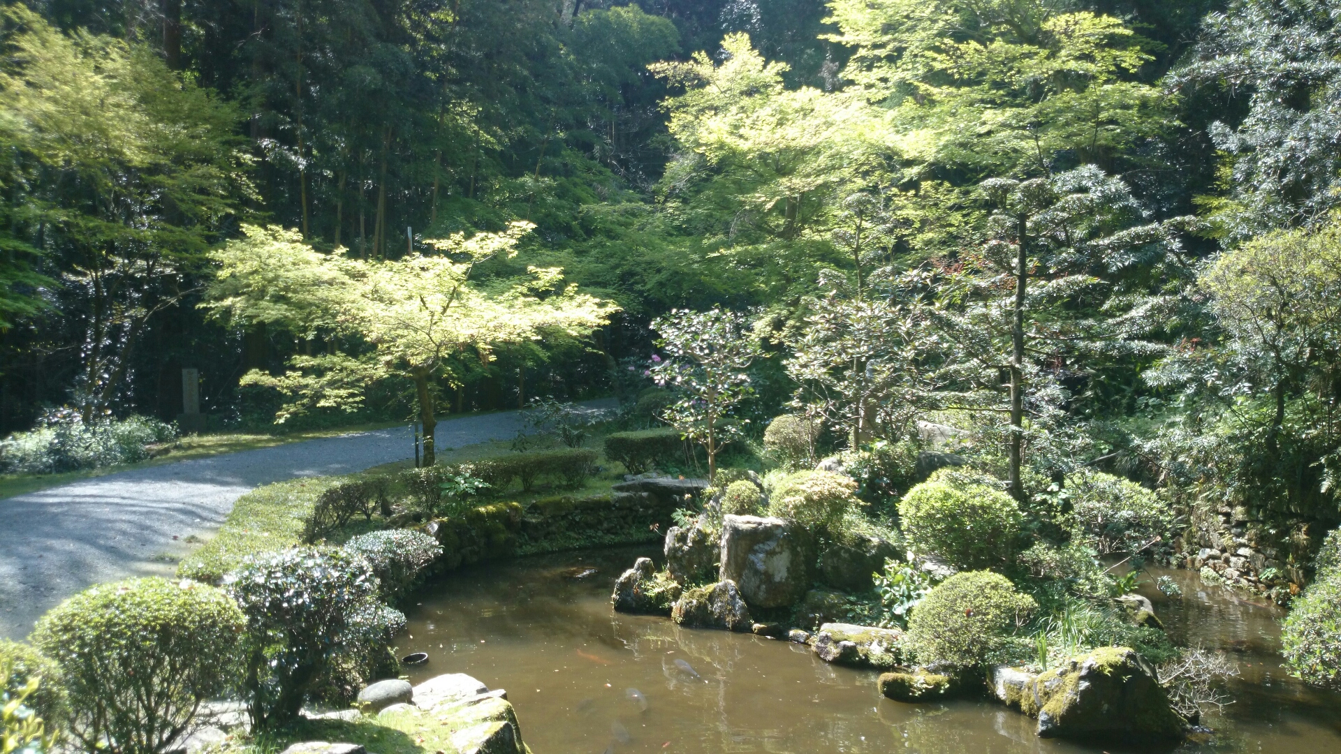 池には鯉がたくさん泳いでいて、見事な庭園。