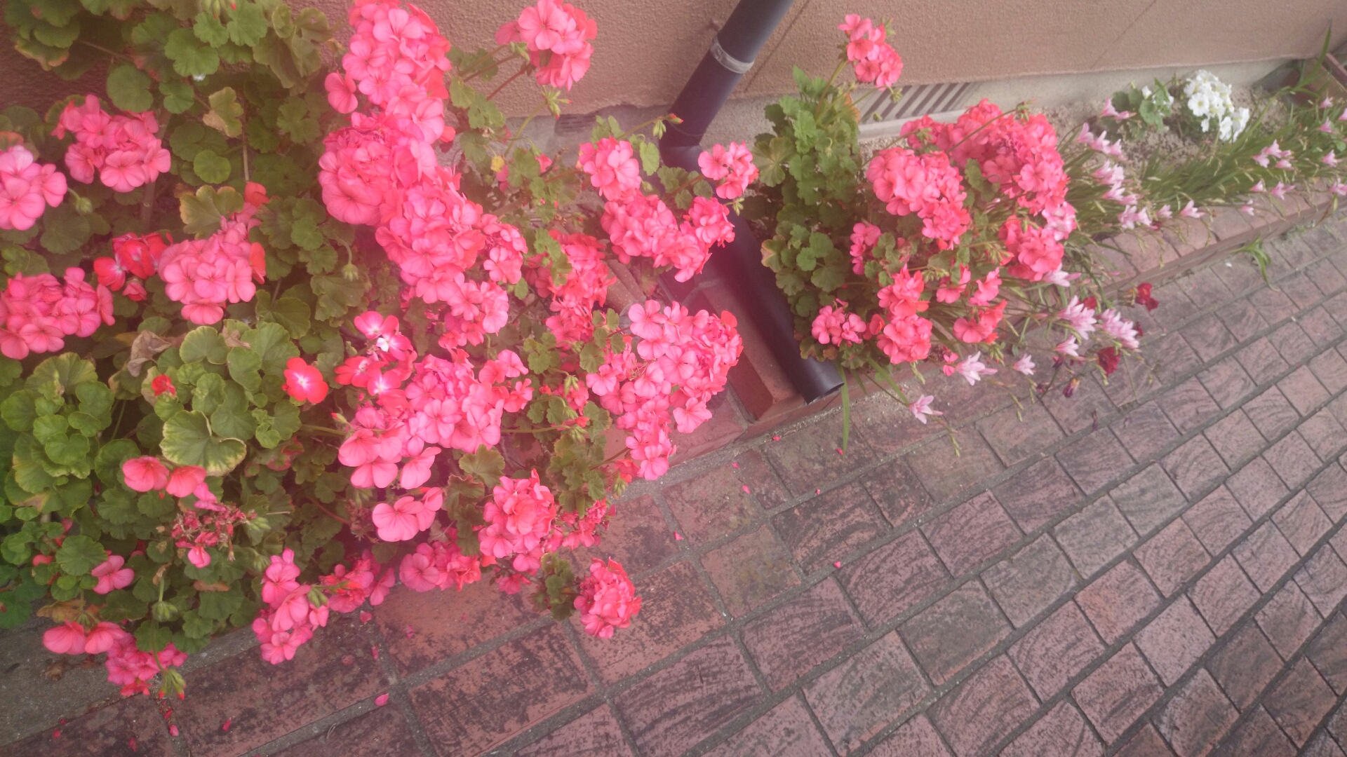 玄関側の花壇。 ゼラニウム❤ペチュニア❤フリージア