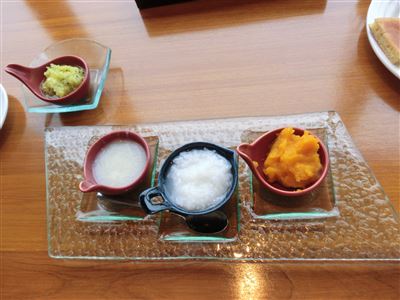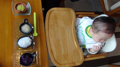 運ばれてきた離乳食は、重湯とかぶと人参の3種類。