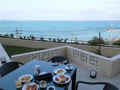 テラスで東シナ海を眺めながらモーニング。