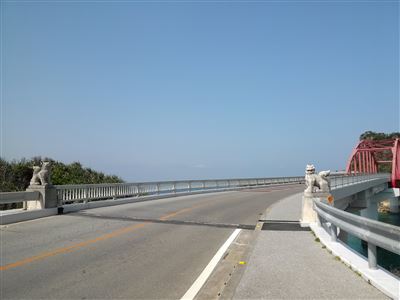 伊計島に渡る橋にはシーサーがいます。