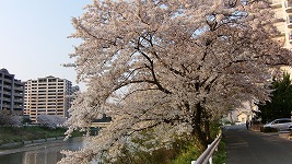 土手沿いの桜はとてもキレイで、花が散った後は緑に生い茂げり葉桜となる。