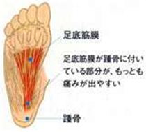 痛みは最初はアーチ部分で徐々に踵部膨隆部にもでてきます。