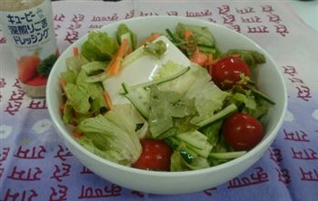 今日のお昼は豆腐と野菜のサラダ。