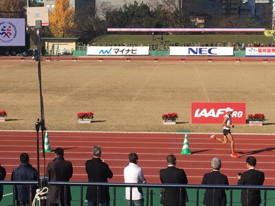 その後天神福銀前に行く予定だったけど、隣にいた毎年応援してるという大迫ファンが「天神は多いですよ。自分は陸上競技場に戻ります。」というので、なるほどーと私達も陸上競技場でフィニッシュを見届けることにしました(๑>◡<๑)